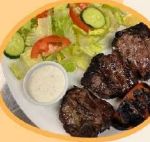 Minced AAA beef Prepared with special herbs and spices and mixed with barberries grilled with low temperature to flavourful and delicious serving with saffron rice and salad or you can order with Naan.